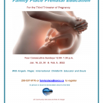 For the third trimester of pregnancy Four consecutive Sundays 12:00 – 1:30 PM Jan 16, 23, 30 and Feb 6, 2022 With Angela Flegel, International Childbirth Educator and Doula 250-537-9176 or email familyplace@ssics.ca to register