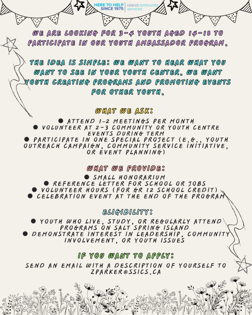 We are looking for 3-4 youth aged 14-18 to participate in  our Youth Ambassador Program.